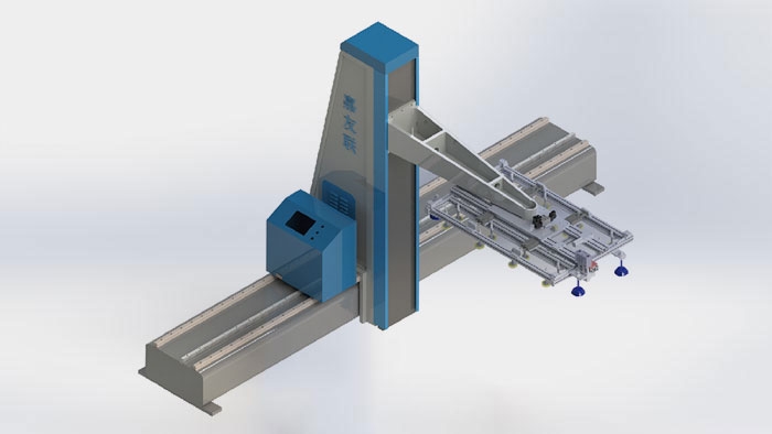 移载吸盘将玻璃从栈板上吸取后放到输送线上