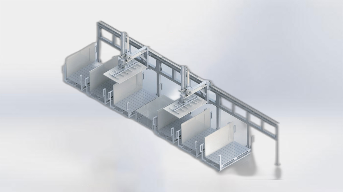 机械手将组件搬运到栈板上,组件堆叠数量裉所客户包装要求